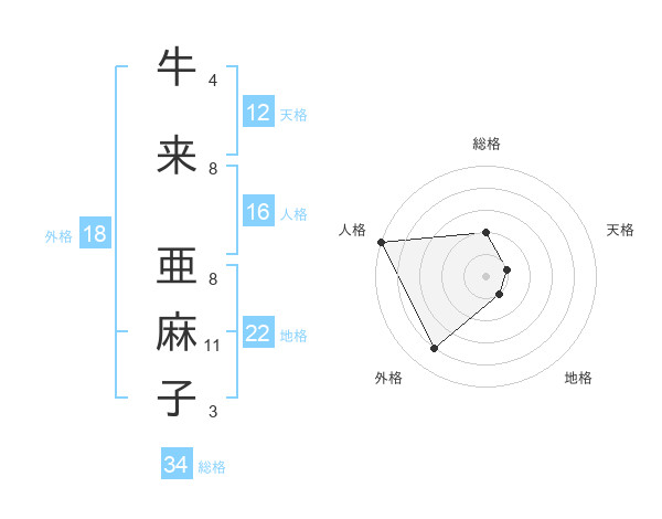 牛来 亜麻子さんを姓名の画数から五運を鑑定