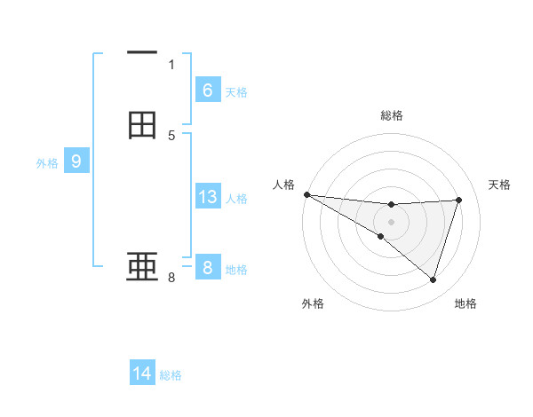 一田 亜さんの総格は14画の1点!
