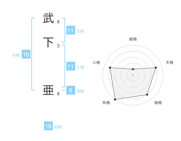 武下 亜さんの天格は11画の4点!
