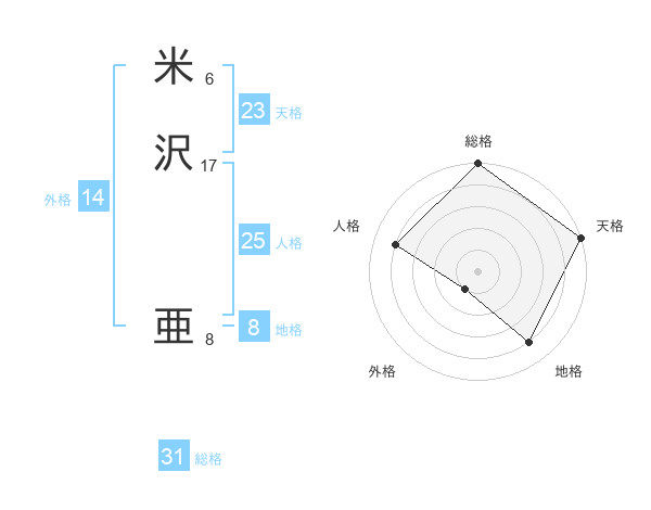 米沢 亜さんの総格は31画の5点!