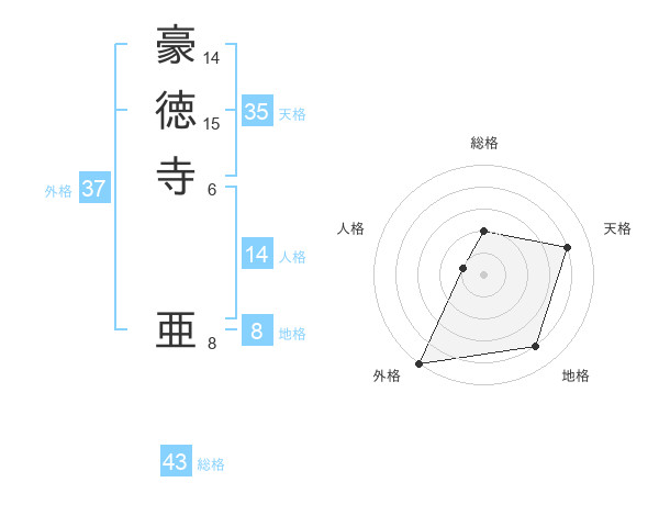 豪徳寺 亜さんの総格は43画の2点!