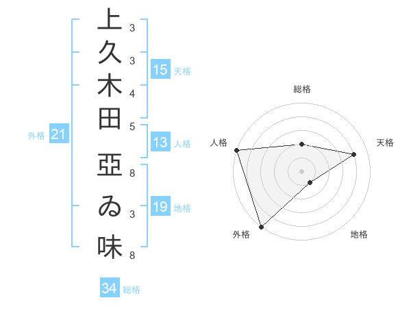 上久木田 亞ゐ味さんの天格は15画の4点!