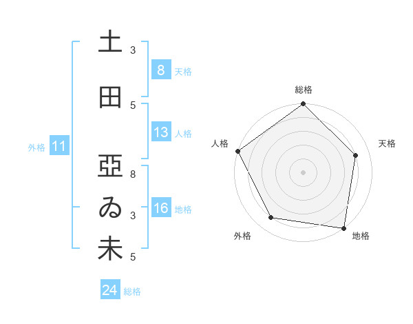 土田 亞ゐ未さんを姓名の画数から五運を鑑定