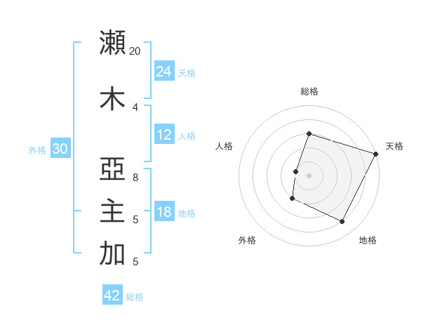 瀬木 亞主加さんを姓名の画数から五運を鑑定