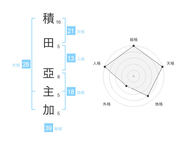 積田 亞主加さんの天格は21画の5点!