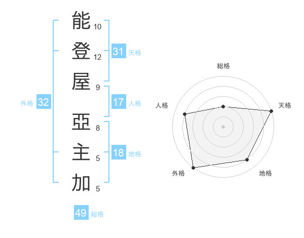 能登屋 亞主加さんを姓名の画数から五運を鑑定