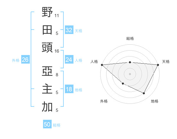 野田頭 亞主加さんを姓名の画数から五運を鑑定