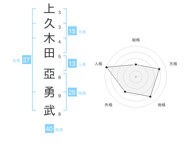 上久木田 亞勇武さんを姓名の画数から五運を鑑定