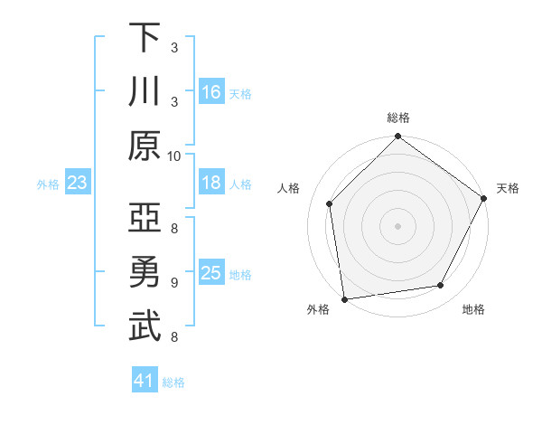 下川原 亞勇武さんの総格は41画の5点!