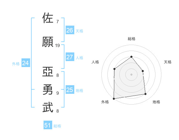 佐願 亞勇武さんを姓名の画数から五運を鑑定