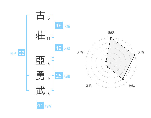 古荘 亞勇武さんを姓名の画数から五運を鑑定