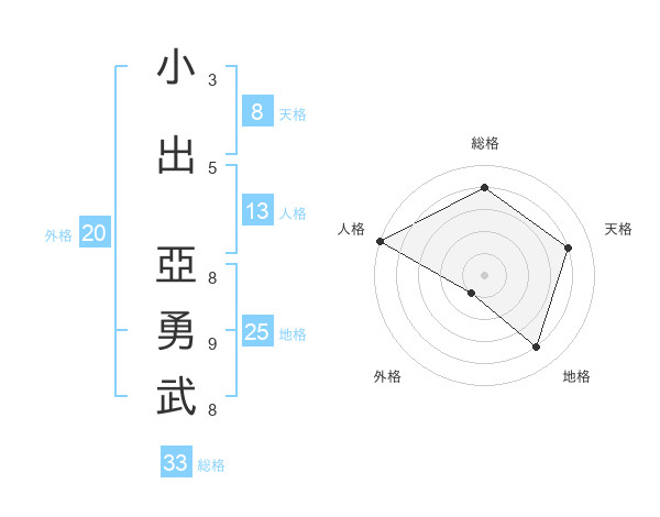 小出 亞勇武さんを姓名の画数から五運を鑑定