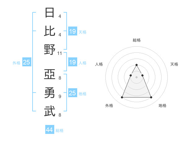 日比野 亞勇武さんを姓名の画数から五運を鑑定