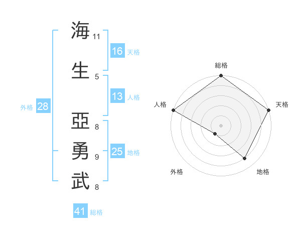 海生 亞勇武さんの総格は41画の5点!