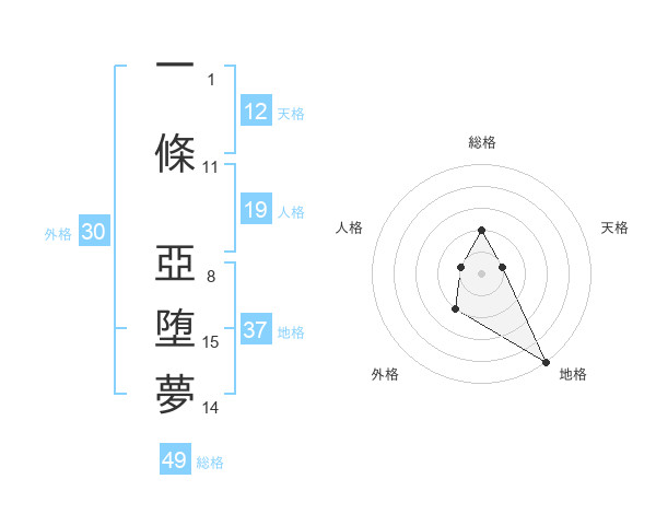 一條 亞堕夢さんの総格は49画の2点!