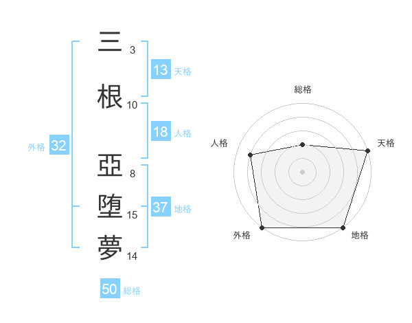 三根 亞堕夢さんを姓名の画数から五運を鑑定