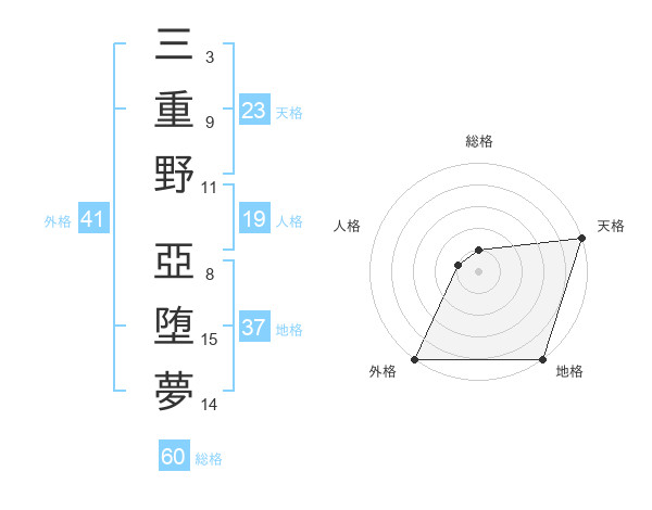 三重野 亞堕夢さんの天格は23画の5点!