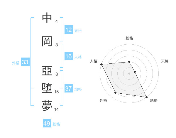 中岡 亞堕夢さんを姓名の画数から五運を鑑定