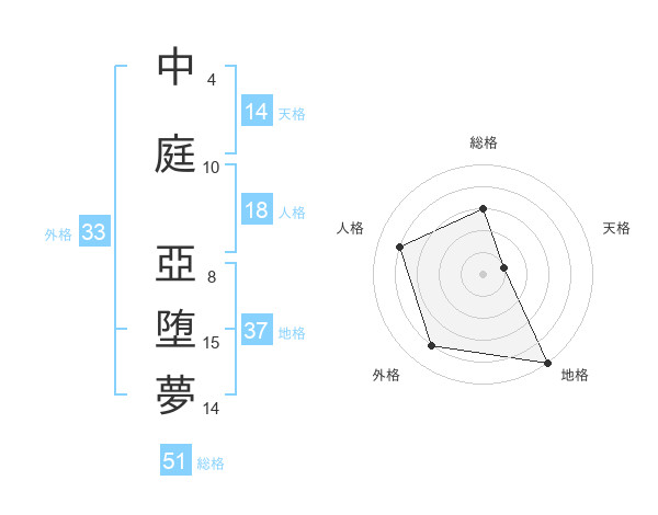 中庭 亞堕夢さんを姓名の画数から五運を鑑定