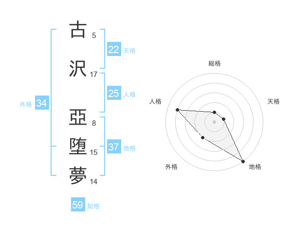 古沢 亞堕夢さんを姓名の画数から五運を鑑定