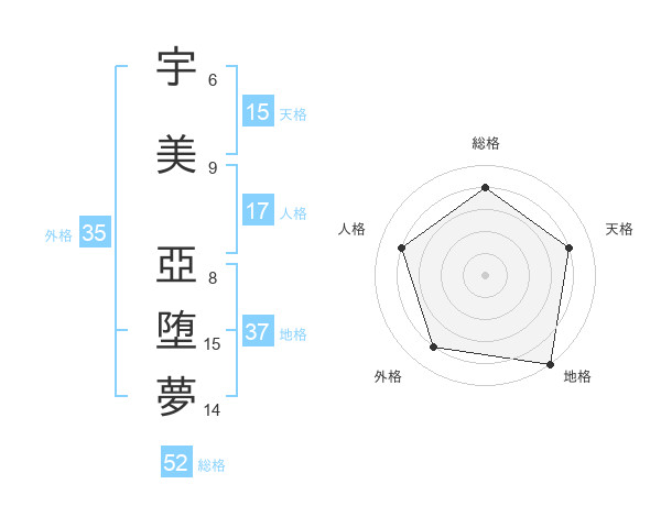 宇美 亞堕夢さんを姓名の画数から五運を鑑定