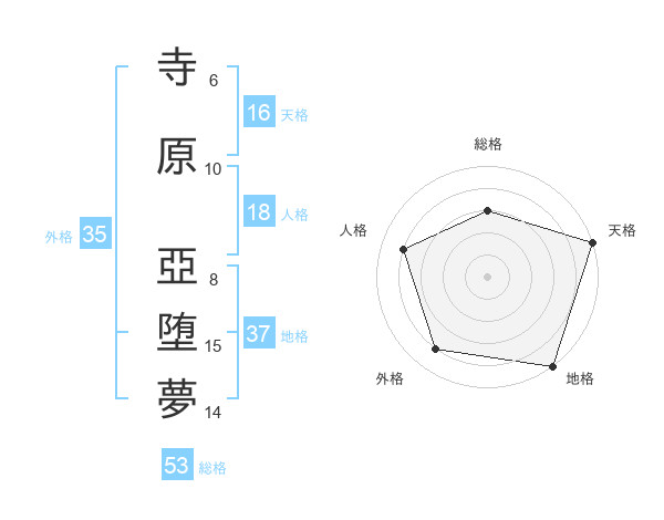 寺原 亞堕夢さんを姓名の画数から五運を鑑定