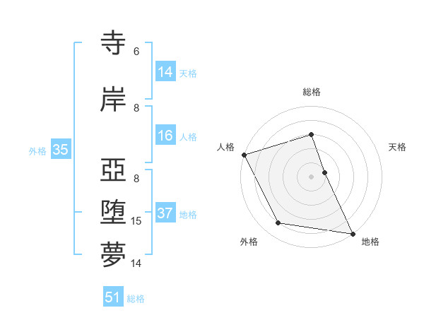 寺岸 亞堕夢さんを姓名の画数から五運を鑑定