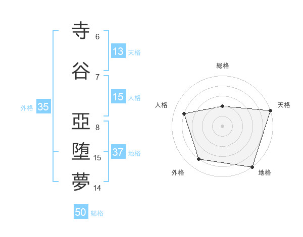 寺谷 亞堕夢さんの総格は50画の2点!