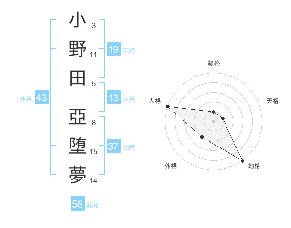 小野田 亞堕夢さんを姓名の画数から五運を鑑定