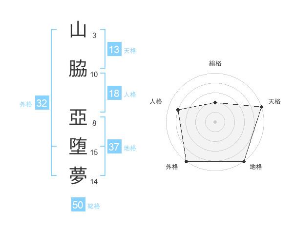 山脇 亞堕夢さんを姓名の画数から五運を鑑定