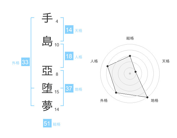 手島 亞堕夢さんを姓名の画数から五運を鑑定