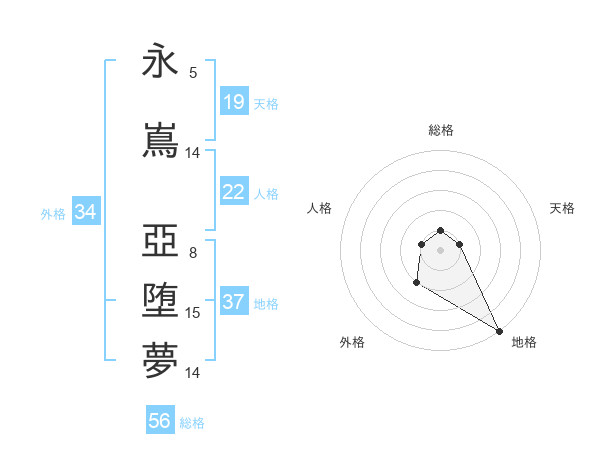 永嶌 亞堕夢さんを姓名の画数から五運を鑑定