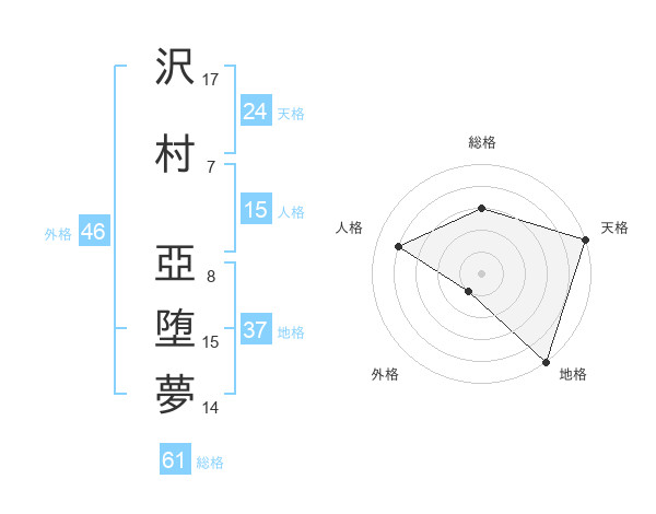 沢村 亞堕夢さんの名前の鑑定結果は!