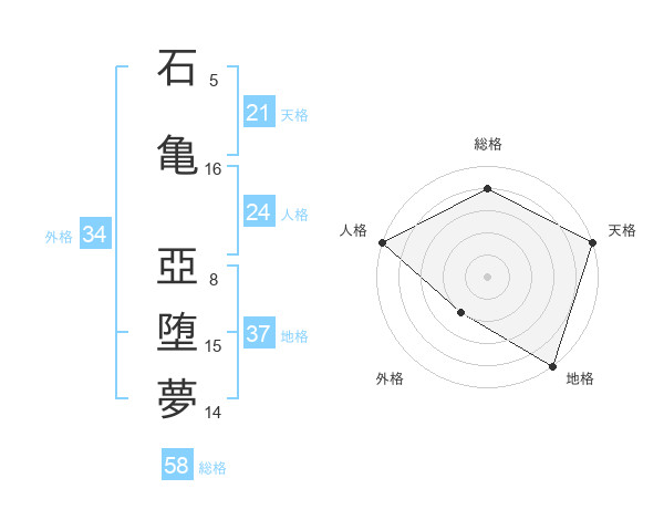石亀 亞堕夢さんを姓名の画数から五運を鑑定