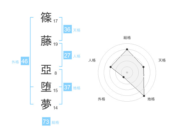 篠藤 亞堕夢さんを姓名の画数から五運を鑑定