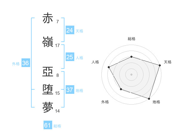 赤嶺 亞堕夢さんの総格は61画の3点!