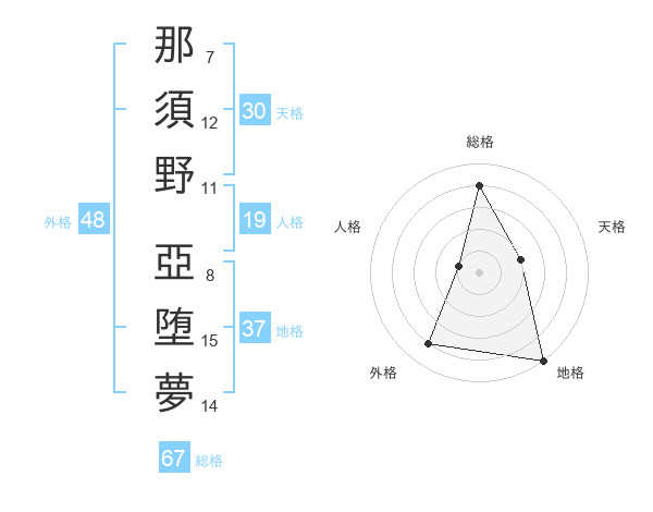 那須野 亞堕夢さんを姓名の画数から五運を鑑定