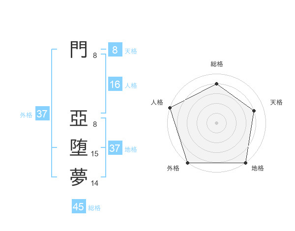 門 亞堕夢さんを姓名の画数から五運を鑑定