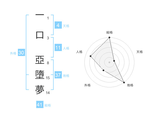 一口 亞墮夢さんを姓名の画数から五運を鑑定