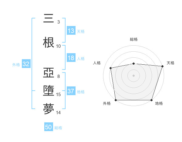 三根 亞墮夢さんを姓名の画数から五運を鑑定