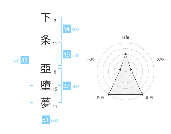 下条 亞墮夢さんの総格は51画の3点!