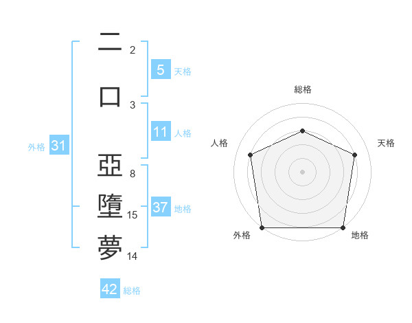 二口 亞墮夢さんの総格は42画の3点!