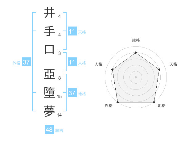 井手口 亞墮夢さんを姓名の画数から五運を鑑定