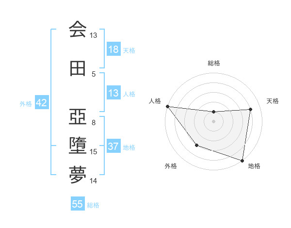 会田 亞墮夢さんの天格は18画の4点!