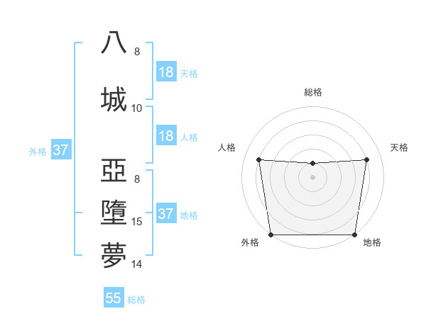 八城 亞墮夢さんを姓名の画数から五運を鑑定