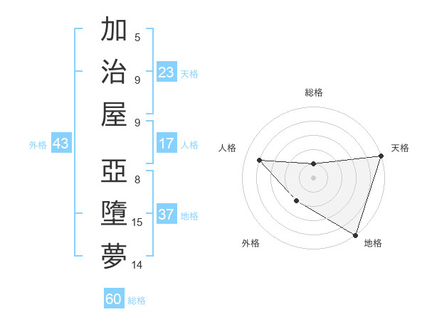 加治屋 亞墮夢さんを姓名の画数から五運を鑑定