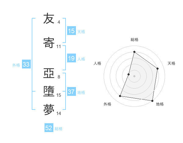 友寄 亞墮夢さんを姓名の画数から五運を鑑定