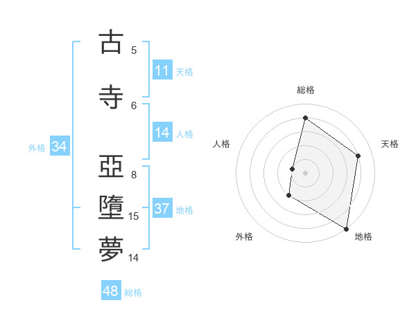 古寺 亞墮夢さんの地格は37画の5点!