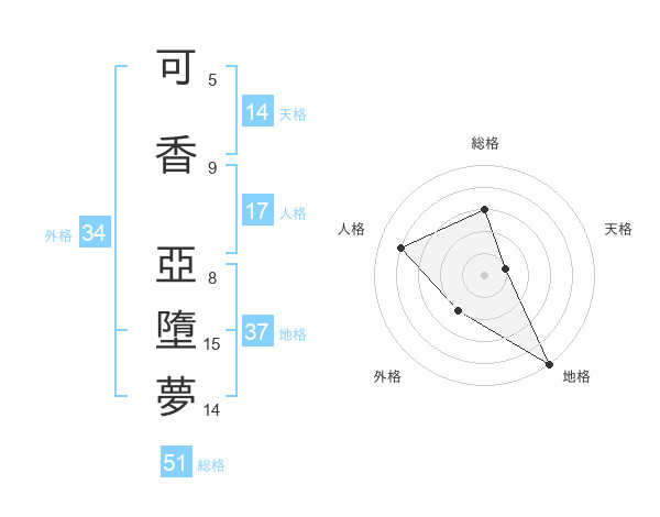 可香 亞墮夢さんの天格は14画の1点!