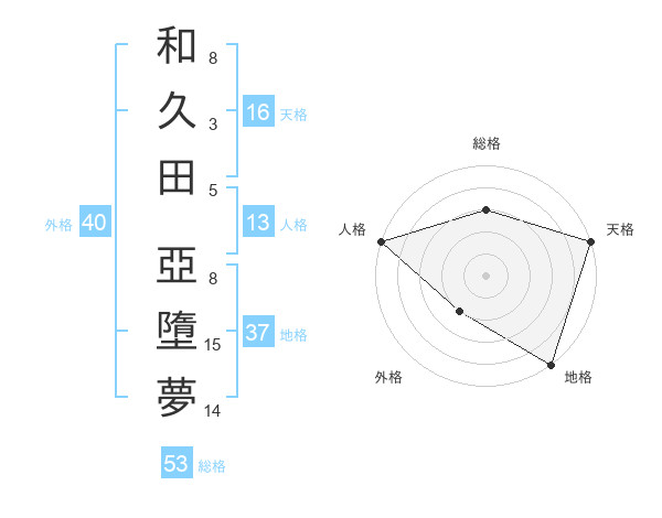 和久田 亞墮夢さんの総格は53画の3点!